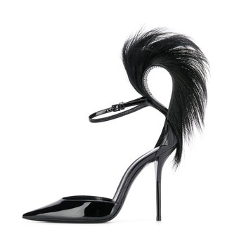 Latest Design of Sexy Fur Black Women's High Heel Shoes Features Women Pumps High Heels Shoes